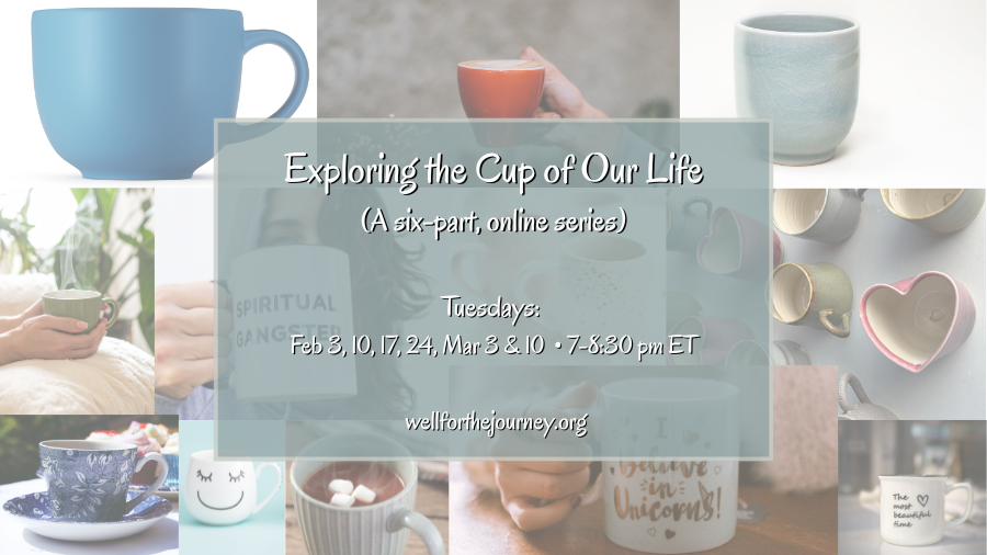 Join Spiritual Companion and Retreat Facilitator, Beth Wood-Roig, for this soul-nourishing and enriching winter series from the warmth and comfort of your home. Each week, Beth will invite reflection on a different image of the cup, such as the open cup, the chipped cup, the broken cup, and the cup of compassion, encouraging insight into how we live with intention and harmony. It is not necessary to purchase or read the book. Simply bring your favorite cup and an openness to discover all that this simple tool can offer.