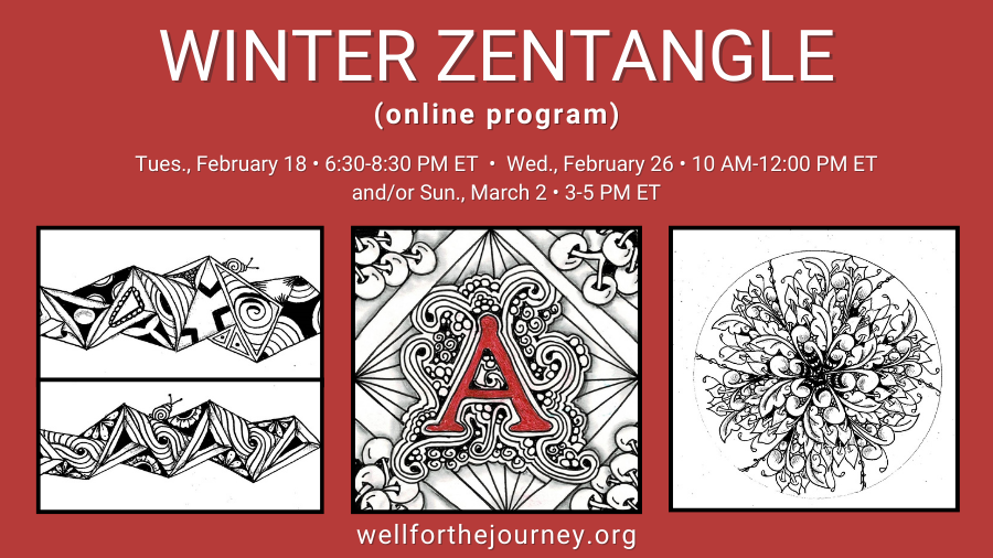 We are thrilled to welcome Becky Boynton back to the Well this Winter as she returns for another offering of Zentangle®! Becky, a Certified Zentangle Teacher, is excited to guide others in learning this step-by-step method that can expand your sense of being creative and positively contribute to your overall experience of well-being. You are invited and encouraged to participate in this upcoming program whether you have never “tangled” before or if you have prior experience with Zentangle.